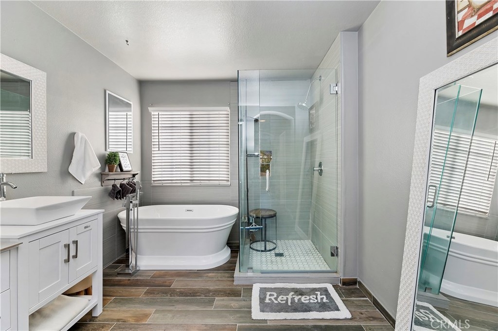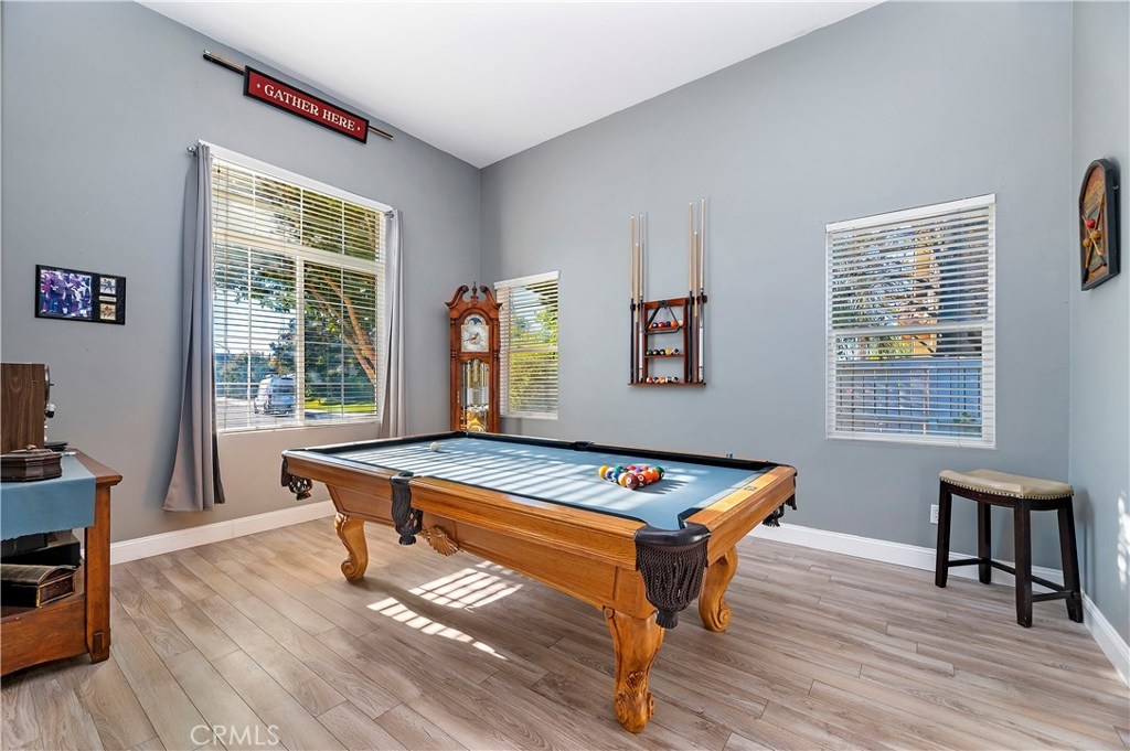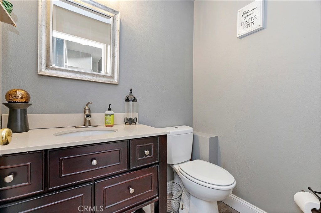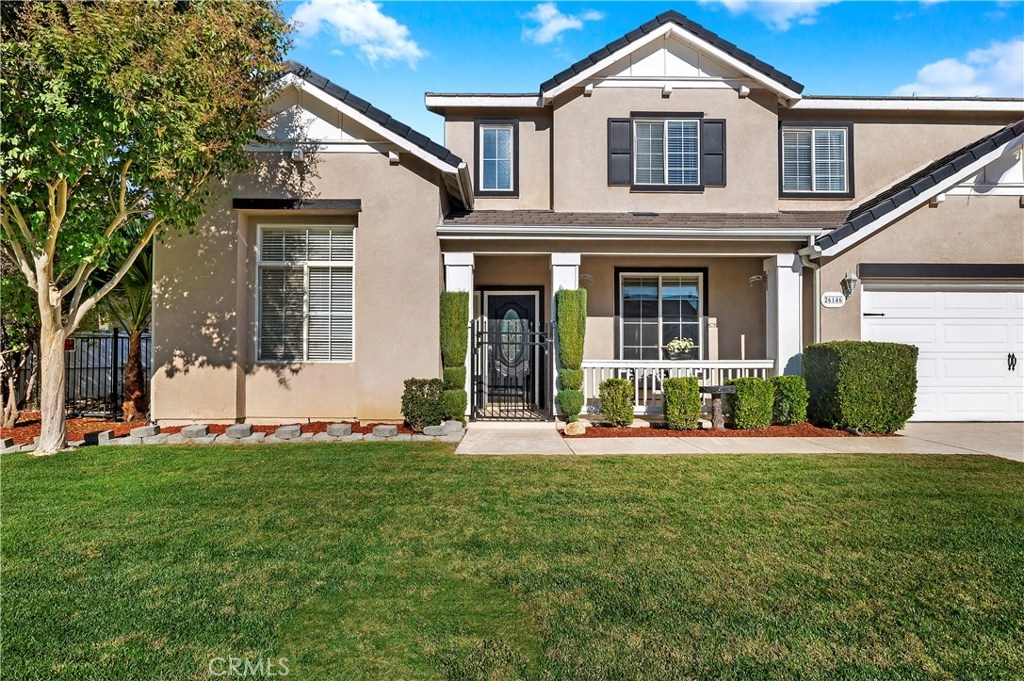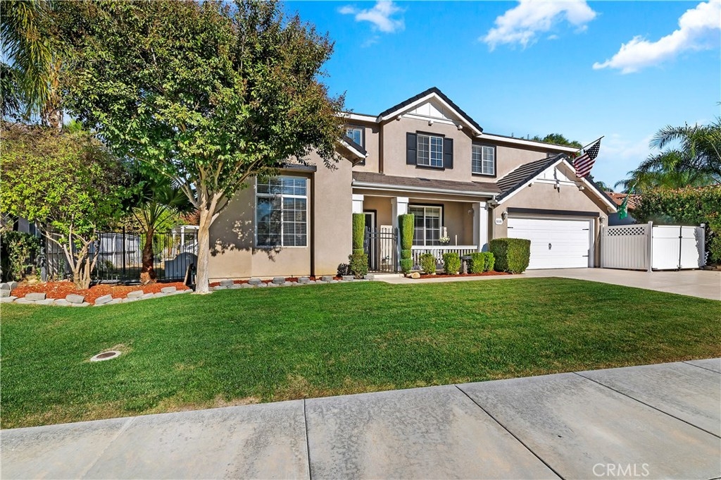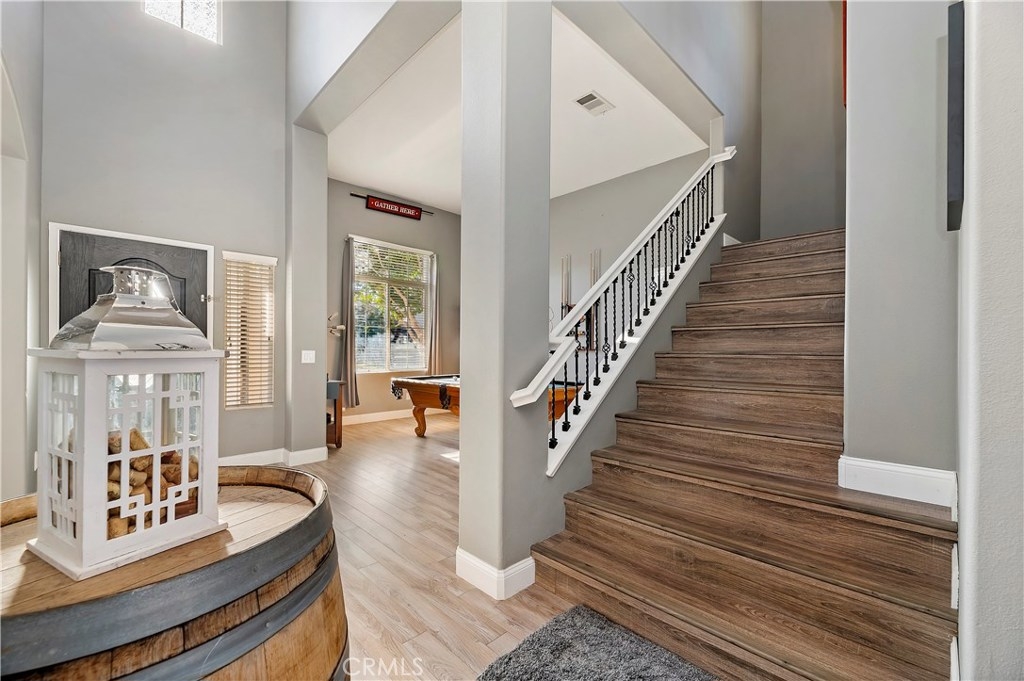 Stunning pool home on a large lot and loaded with upgrades along with RV parking. This home is over 2800 sf with four bedrooms, large bonus/great room and optional office or 5th bedroom downstairs and a 3 car garage. Stately privacy gate to a cozy porch and then dramatic high ceilings as you enter this amazing home. Upgrades include plank flooring, new interior paint, wrought iron stair rails, upgraded baseboards. ceiling fans and remodeled kitchen and bathrooms. Gourmet kitchen with super large granite island and granite counters with full backsplash, stainless steel appliances and beautiful black cabinets with contemporary hardware. Butler's pantry and downstairs laundry room. Huge upstairs bonus room for second living area. All the bathrooms are elegantly remodeled with modern cabinets and fixtures. Spacious master suite with two walk-in closets. Entertain and relax in this magnificent backyard that includes a sparkling pool, patio cover, plenty of grass area and large side yard that would be great for a dog run. The other side yard is a 46 x 9 gated RV space. Extensive hardscape in the back and plenty of seat wall to accommodate all your friends and family. TV in the back stays. All this in the highly desirable community of Vintage Reserve; centrally located close to shops, restaurants, schools, parks and easy access to freeways. An impressive pool home in a wonderful neighborhood!