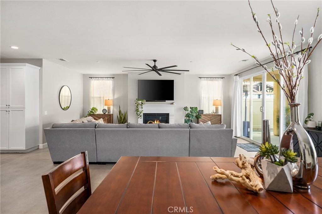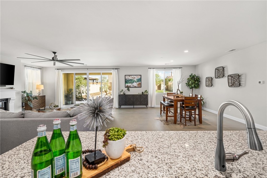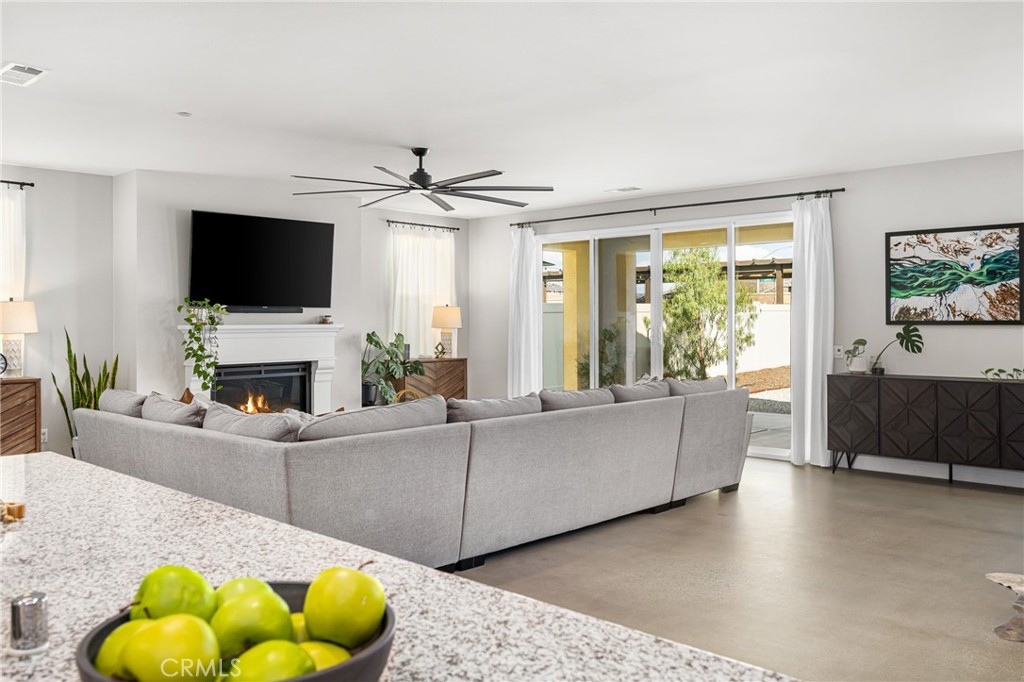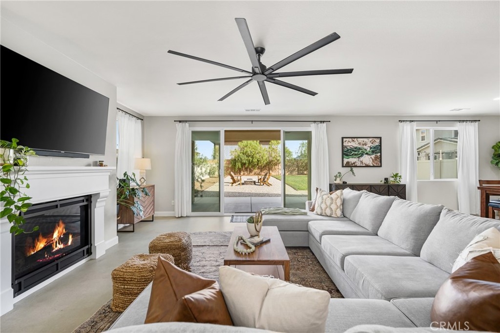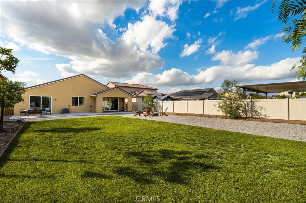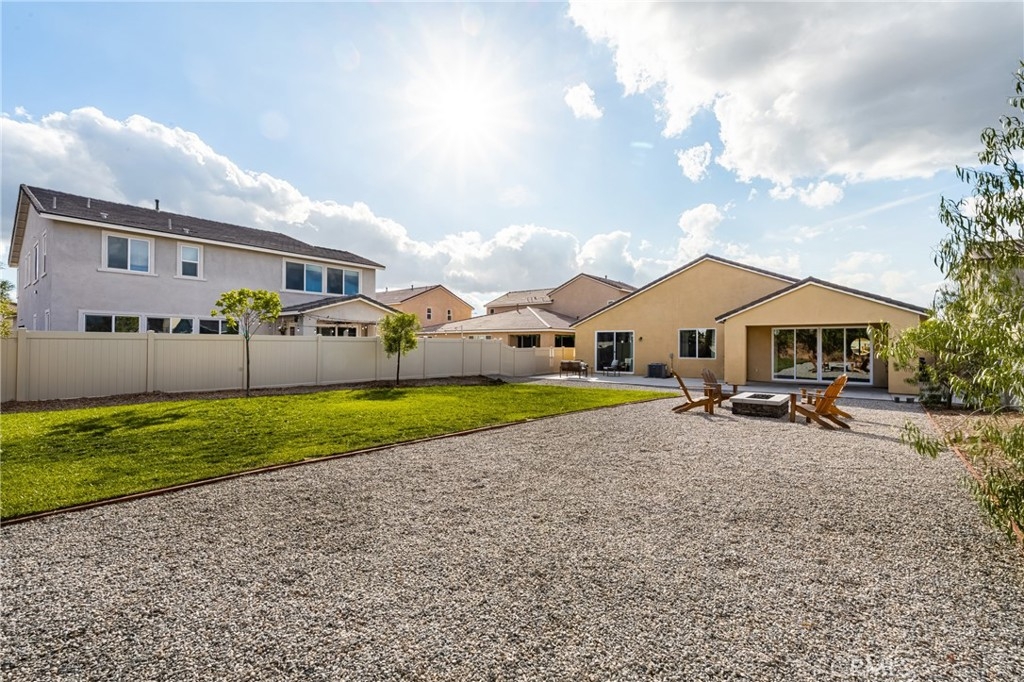 Experience the best of luxury living at 34536 Bright Pine Way, a stunning new home in the exclusive Spencer’s Crossing neighborhood of Murrieta, a master planned community resting on over 600 acres with walking trails, swimming pools, a lighted sports park, tot lots, BBQ areas, a recreational center and more! This single-level property boasts 2,730 square feet of living space on a premium lot, offering a modern and open concept floor plan that seamlessly blends indoor and outdoor living. Warm and welcoming, the front entrance features an 8' custom door that leads into the main living area with soaring ceilings, LED recessed lighting, and sleek concrete floors, creating a contemporary atmosphere throughout the home. The chef-inspired kitchen is a standout feature, featuring extensive custom cabinets, expansive counters, stainless steel appliances, and an oversized eating island that opens to the main living areas. Entertain guests in the generous Dining Room and Great Room, complete with a fireplace and views of the wonderful backyard through glass sliding patio doors. The covered patio, grassy yard, and firepit area make outdoor living and entertaining a breeze, all while taking advantage of the countless community amenities just minutes away. Retreat to the Primary Suite, which is privately situated from the 3 secondary bedrooms and features a spa-inspired bathroom and generous walk-in closet. This home also comes equipped with a spacious 3-car tandem garage, providing ample parking and storage space for your vehicles and belongings. Highly upgraded with luxury and comfort in mind and conveniently located near top-rated schools, shopping, and dining, don’t miss out on the opportunity to make this move-in ready home your own. Welcome to your new dream home!