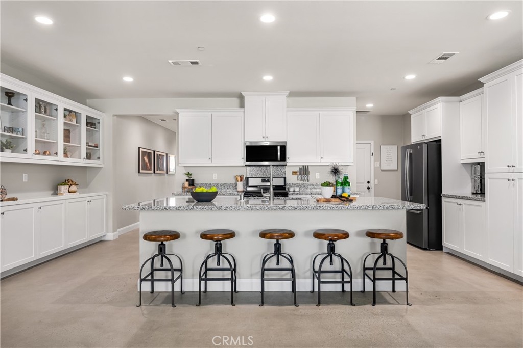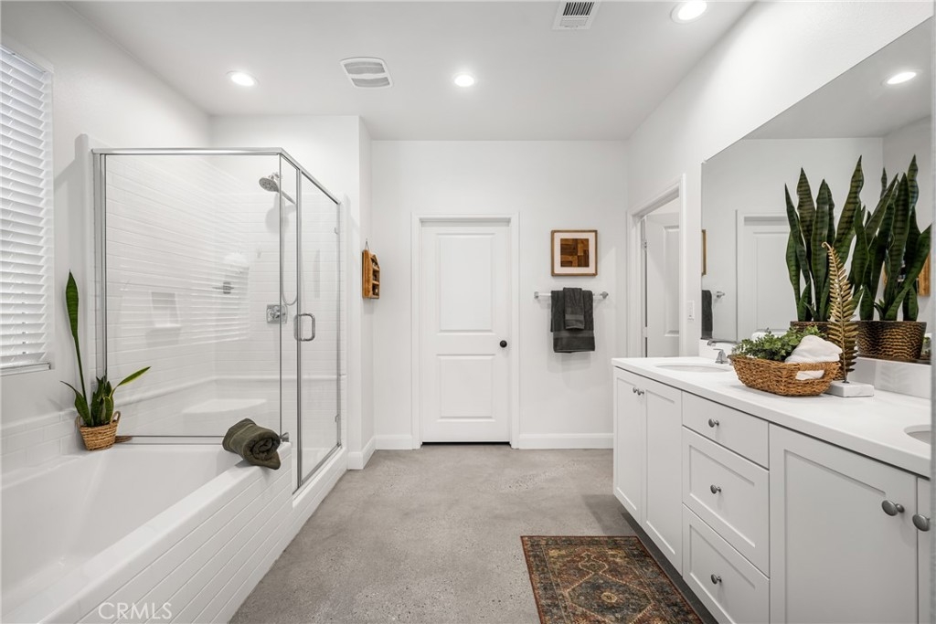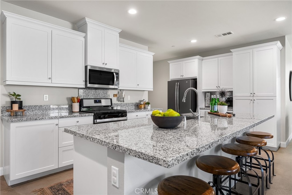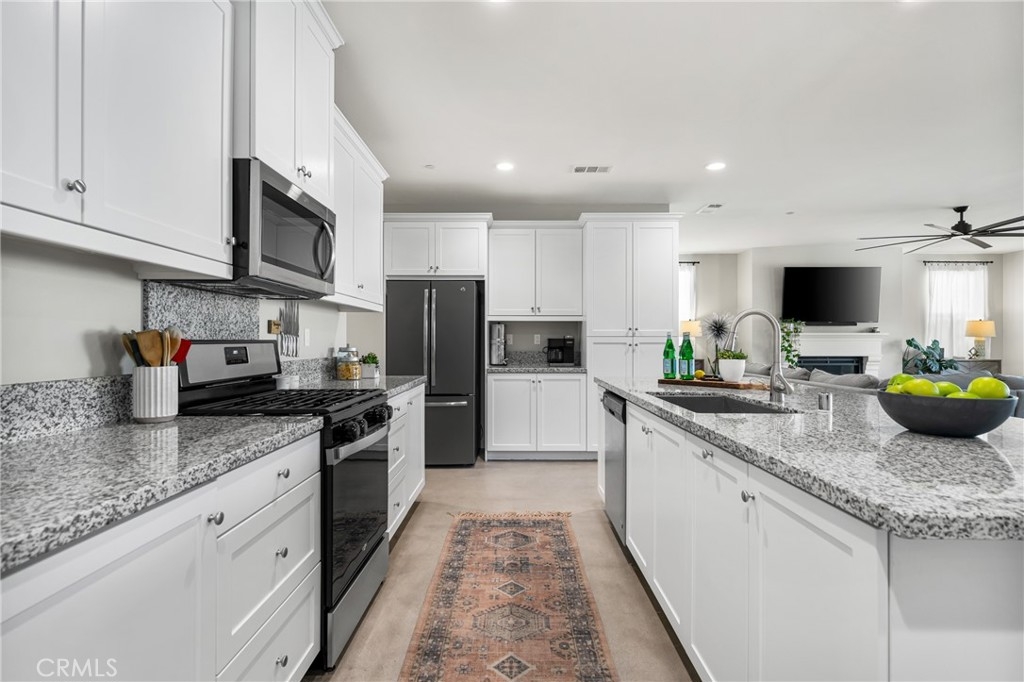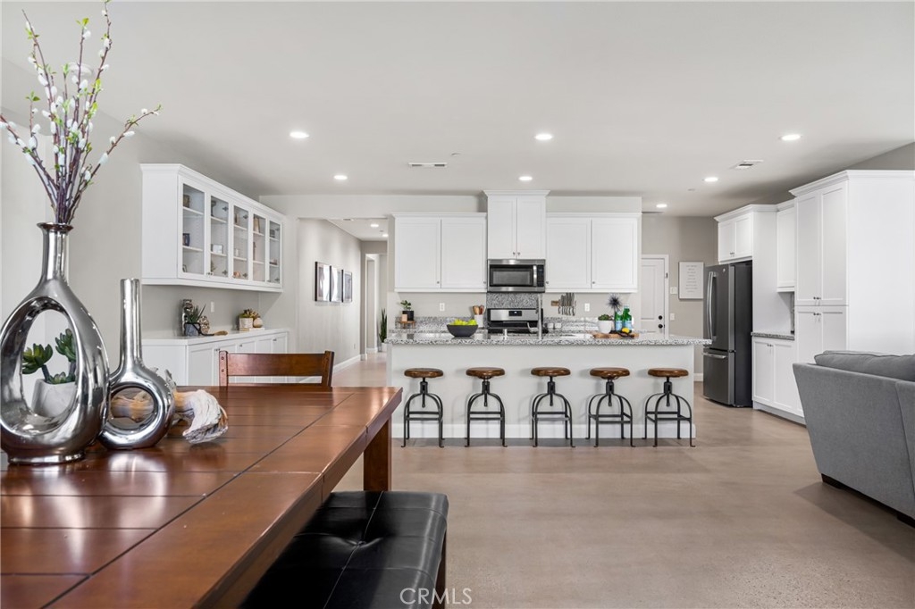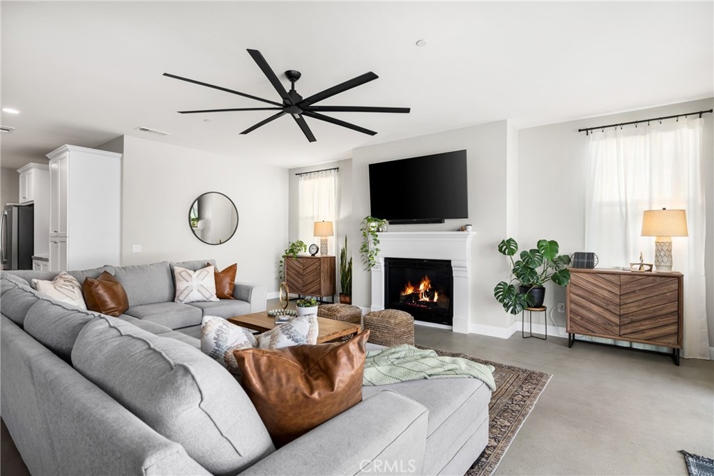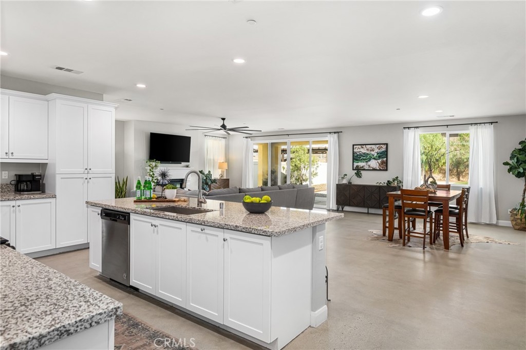 Experience the best of luxury living at 34536 Bright Pine Way, a stunning new home in the exclusive Spencer’s Crossing neighborhood of Murrieta, a master planned community resting on over 600 acres with walking trails, swimming pools, a lighted sports park, tot lots, BBQ areas, a recreational center and more! This single-level property boasts 2,730 square feet of living space on a premium lot, offering a modern and open concept floor plan that seamlessly blends indoor and outdoor living. Warm and welcoming, the front entrance features an 8' custom door that leads into the main living area with soaring ceilings, LED recessed lighting, and sleek concrete floors, creating a contemporary atmosphere throughout the home. The chef-inspired kitchen is a standout feature, featuring extensive custom cabinets, expansive counters, stainless steel appliances, and an oversized eating island that opens to the main living areas. Entertain guests in the generous Dining Room and Great Room, complete with a fireplace and views of the wonderful backyard through glass sliding patio doors. The covered patio, grassy yard, and firepit area make outdoor living and entertaining a breeze, all while taking advantage of the countless community amenities just minutes away. Retreat to the Primary Suite, which is privately situated from the 3 secondary bedrooms and features a spa-inspired bathroom and generous walk-in closet. This home also comes equipped with a spacious 3-car tandem garage, providing ample parking and storage space for your vehicles and belongings. Highly upgraded with luxury and comfort in mind and conveniently located near top-rated schools, shopping, and dining, don’t miss out on the opportunity to make this move-in ready home your own. Welcome to your new dream home!