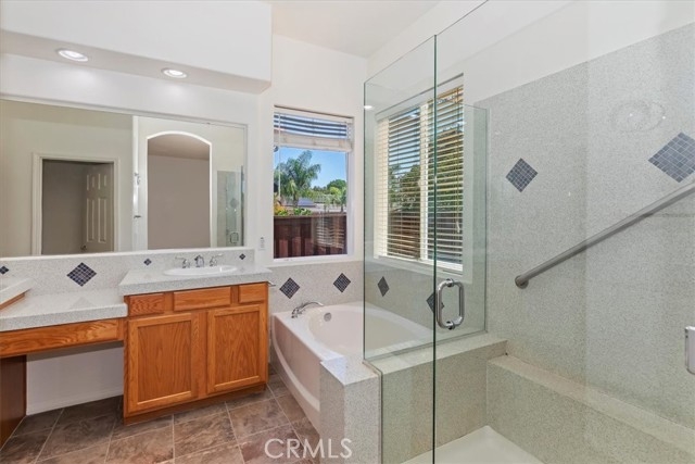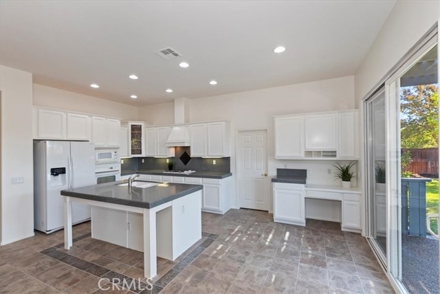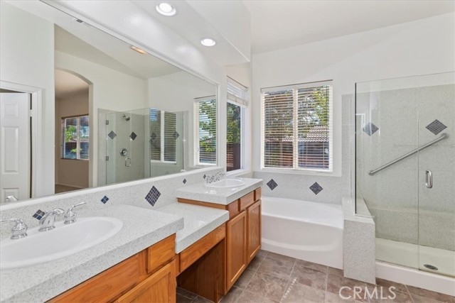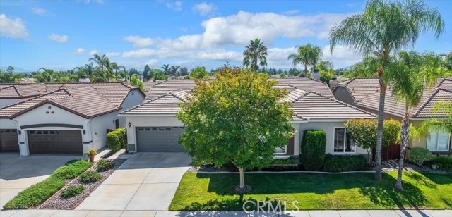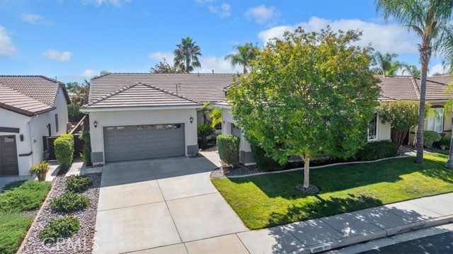 Welcome to this stunning single-story home in the highly desirable Clarendon Hills community—an exclusive neighborhood made up entirely of single-story residences, offering unmatched privacy and charm. Ideally located in the heart of Murrieta, this 2,701 sq. ft. home combines spacious design, thoughtful upgrades, and a rare dual-master layout. From the moment you arrive, you’ll be greeted by an inviting courtyard entry accented with brick paver trim. Inside, you’ll find brand-new interior paint just completed in a crisp, timeless white, creating a bright and welcoming atmosphere. The expansive kitchen features modern white cabinetry, a massive island, engineered quartz countertops, and a large walk-in pantry. A built-in desk area offers convenience, and the kitchen opens to the family room highlighted by a cozy fireplace. The laundry room includes a sink and cabinetry, and the washer and dryer are included. The primary suite boasts an upgraded bath with engineered quartz counters, shower and tub surround, and a massive walk-in closet. On the opposite side of the home, a second oversized bedroom with en-suite bath and direct access to the private single-car garage creates an ideal setup for multi-generational living, a guest suite, or a home office. Two additional bedrooms and another full bathroom provide flexibility for families of all sizes. Crown molding in a main living area and ceiling fans add comfort and style. Parking and storage are abundant with a two-car garage featuring built-in cabinets plus a separate single-car garage with its own entry. Step outside to the private backyard, designed for both relaxation and gatherings. Extensive hardscape with pebble stone flooring, seating walls with brick caps, and a covered patio set the stage for enjoying Southern California’s year-round sunshine. Landscaping includes vibrant rose bushes and fruit trees for added charm. Best of all, beautiful Vintage Reserve Park is just three houses down, making outdoor activities easily accessible. This home is also close to the Temecula Promenade Mall, dining, and entertainment, with Temecula’s award-winning wineries and Pechanga Resort & Casino only a short drive away. With a low tax rate, low HOA, and the rare appeal of being in an all single-story neighborhood, this Clarendon Hills home is a true find in Murrieta. Don’t miss the chance to make it your own!