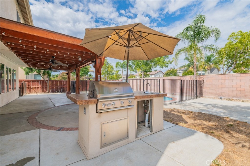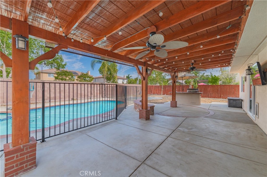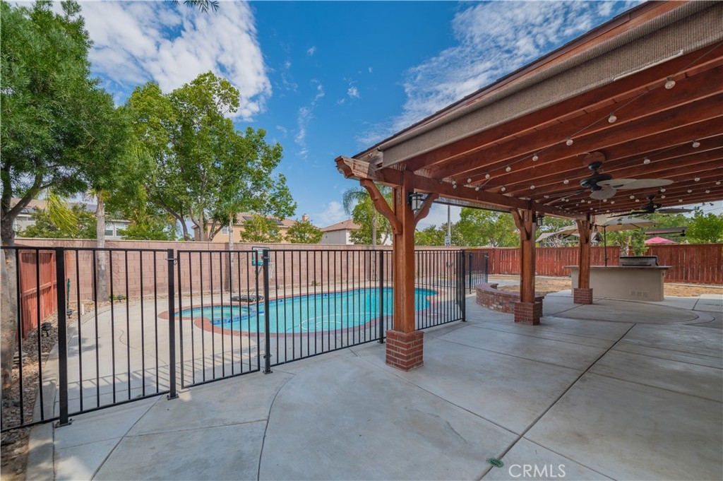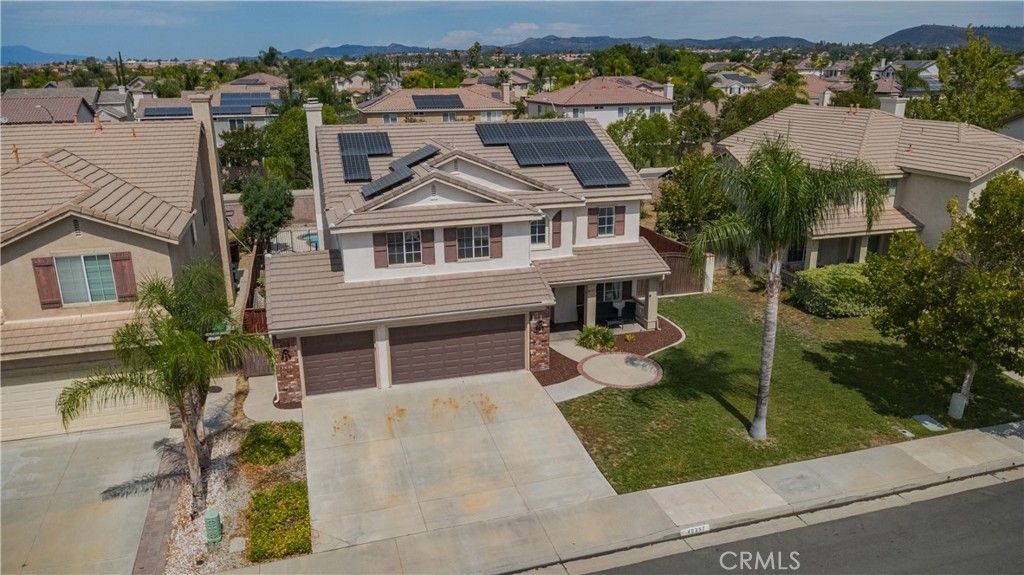 Exquisite Vintage Reserve Estate is Upgraded Four-Bedroom Residence with Bonus Suite in the Prestigious Murrieta School District. This distinguished four-bedroom residence, complete with a spacious bonus suite, is located within the highly esteemed Murrieta School District and offers an elevated standard of living ideal for families seeking space, elegance, and comfort. The interior has been extensively upgraded to reflect refined taste and quality craftsmanship. Throughout the home, premium hardwood flooring lends a timeless aesthetic while ensuring durability. At the heart of the residence lies a remodeled gourmet kitchen, meticulously designed for culinary excellence and appointed with countertops, custom-built cabinetry. The expansive master suite serves as a private retreat, featuring a redesigned walk-in closet and a luxuriously appointed en-suite bathroom, offering a serene and sophisticated environment. Occupying a premium lot, the property showcases sweeping city views and includes a beautifully maintained swimming pool, outdoor BBQ island and sitting area - Perfect for both entertaining guests and private relaxation. Additional enhancements include FULLY PAID OFF Solar Panels, New flooring & baseboards, New pool vacuum, New appliances, New irrigation system, total upgrades over $78k. Ideally positioned, the home is walking distance of Buchanan Elementary School and a brief 5-7 minute driving to Freeways. Its prime location also provides convenient access to the local library, major shopping centers, and key transportation corridors. Blending timeless architectural design with modern upgrades and an enviable location, this exceptional residence represents a rare opportunity to own a truly remarkable home in the prestigious community of Murrieta with no HOA. All information provided is deemed reliable but not guaranteed. Buyers and their agents are strongly encouraged to independently verify all facts and details to their satisfaction.